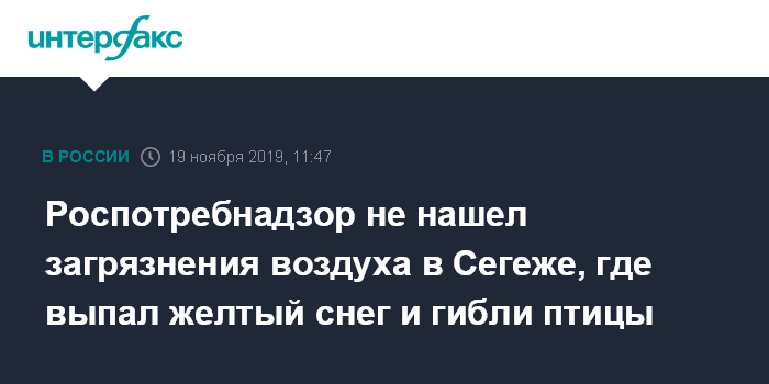 Роспотребнадзор не нашел загрязнения воздуха в Сегеже, где выпал желтый снег и гибли птицы