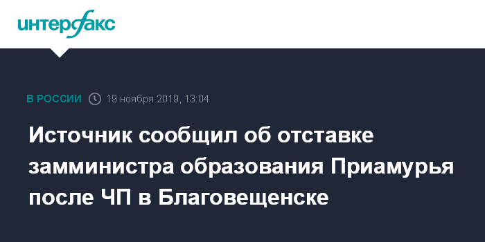Источник сообщил об отставке замминистра образования Приамурья после ЧП в Благовещенске