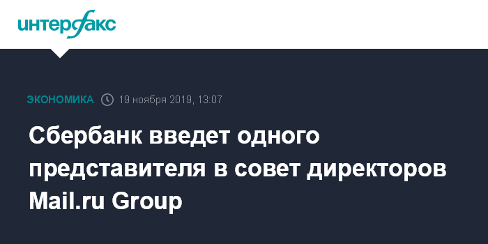 Сбербанк введет одного представителя в совет директоров Mail.ru Group