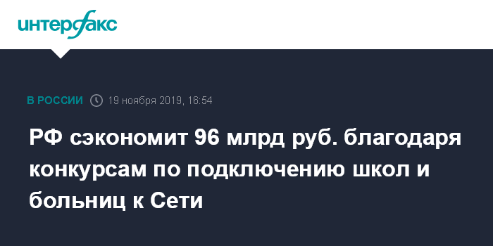 РФ сэкономит 96 млрд руб. благодаря конкурсам по подключению школ и больниц к Сети