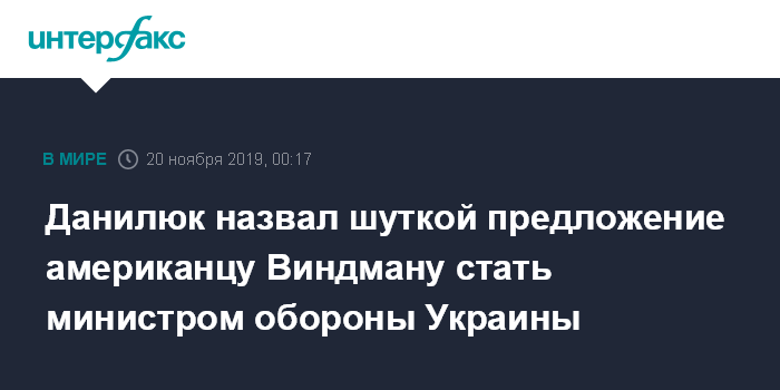 Данилюк назвал шуткой предложение американцу Виндману стать министром обороны Украины