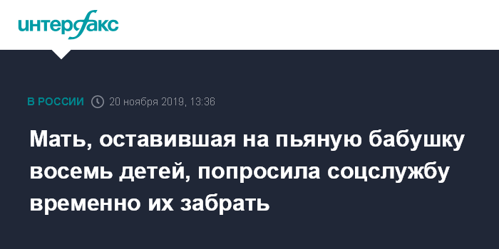 Мать, оставившая на пьяную бабушку восемь детей, попросила соцслужбу временно их забрать
