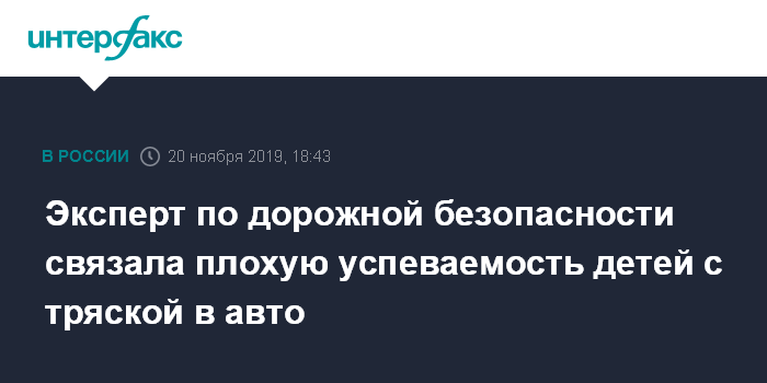 Москва. 20 ноября. INTERFAX.RU - Руководитель экспертного центра "Движение без опасности" Наталья Агре сообщила, что сильная тряска в автомобиле может являться одной из причин плохой успеваемости у школьников начальных классов.