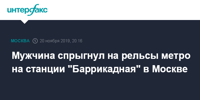 Мужчина спрыгнул на рельсы метро на станции "Баррикадная" в Москве