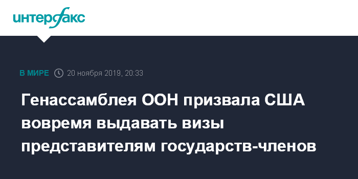"Генассамблея рассчитывает, что страна пребывания (США - ИФ) будет оперативно выдавать въездные визы всем представителям государств-членов и членам Секретариата (...) и делать это своевременно с тем, чтобы лица, направленные на работу в составе постоянного представительства или набранные для работы в Секретариате, могли максимально быстро приступить к исполнению своих обязанностей, а представители государств-членов - приезжать в Нью-Йорк по официальным делам ООН", - отмечается в резолюции.