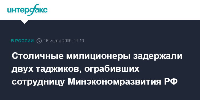 Столичные милиционеры задержали двух таджиков, ограбивших сотрудницу Минэкономразвития РФ
