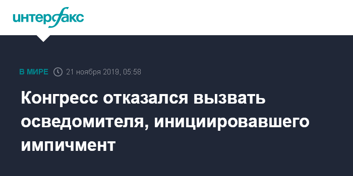 Конгресс отказался вызвать осведомителя, инициировавшего импичмент