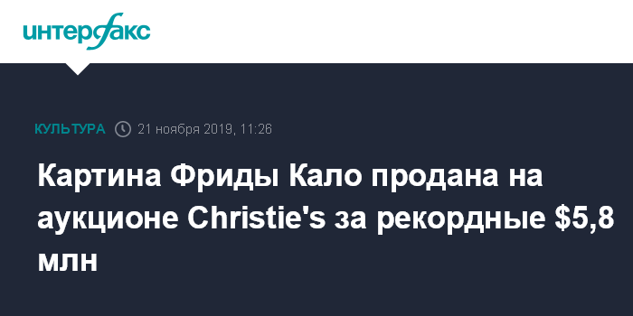 Картина Фриды Кало продана на аукционе Christie's за рекордные $5,8 млн