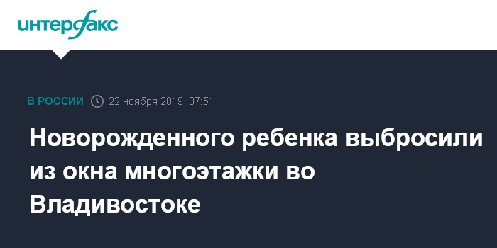 Москва. 22 ноября. INTERFAX.RU - Жительница Владивостока подозревается в убийстве своего новорожденного ребенка, которого, как полагает следствие, она выбросила из окна многоэтажного дома, сообщила пресс-служба Следственного управления СКР по Приморскому краю.