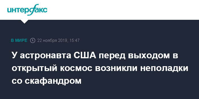 У астронавта США перед выходом в открытый космос возникли неполадки со скафандром