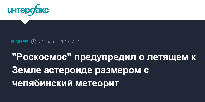 "6 ноября 2019 года ... был обнаружен неизвестный ранее малый астероид", - сообщили в госкорпорации.