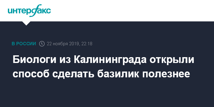 Москва. 22 ноября. INTERFAX.RU - Научные сотрудники Балтийского федерального университета имени Канта выяснили, как сделать базилик более полезным, сообщила пресс-служба университета. Результаты исследования опубликованы в научном журнале Plants.
