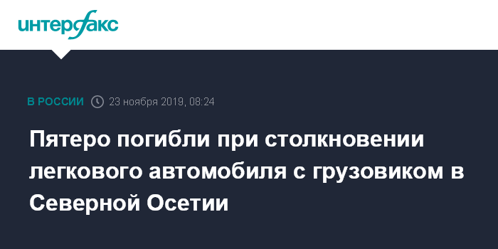 Пятеро погибли при столкновении легкового автомобиля с грузовиком в Северной Осетии