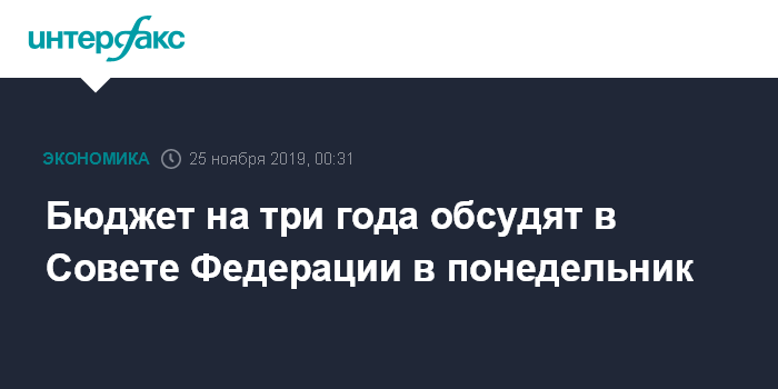 Москва. 25 ноября. INTERFAX.RU - Совет Федерации на заседании в понедельник обсудит закон о федеральном бюджете на 2020 год и на плановый период 2021-2022 гг.