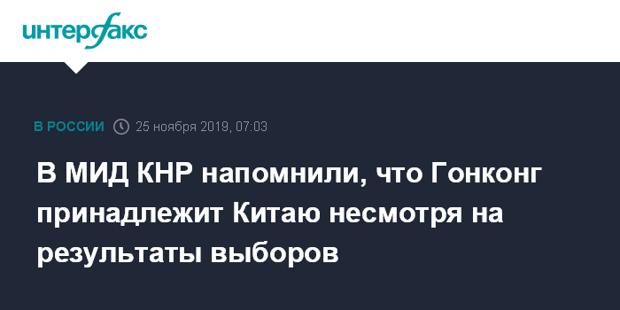 Москва. 25 ноября. INTERFAX.RU - Вне зависимости от того, какими будут результаты местных выборов в Гонконге, он был и остается китайским, заявил министр иностранных дел КНР Ван И.
