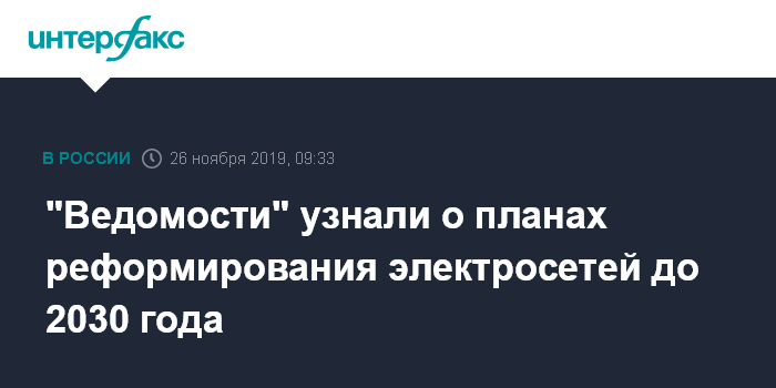 "Ведомости" узнали о планах реформирования электросетей до 2030 года