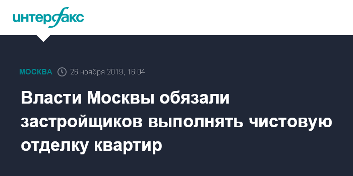 Власти Москвы обязали застройщиков выполнять чистовую отделку квартир