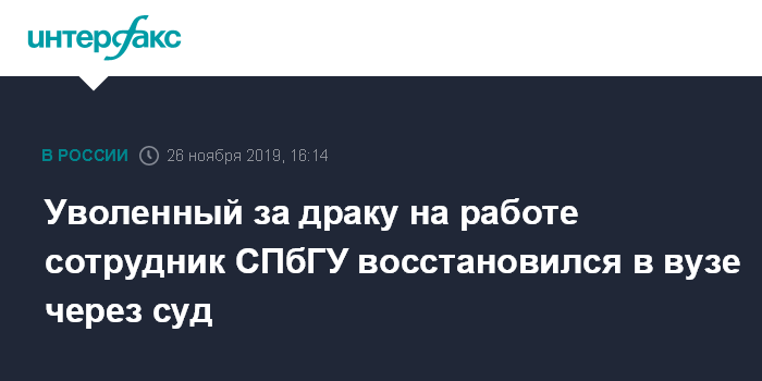 Уволенный за драку на работе сотрудник СПбГУ восстановился в вузе через суд