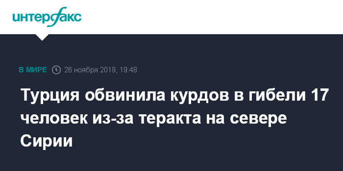В субботу стало известно о теракте в сирийском городе Телль-эль-Абьяд, расположенном близ границы с Турцией и контролируемом турецкими войсками. По информации очевидцев, контактирующих с сирийской оппозицией, тогда в результате теракта погибли девять человек, часть из которых - мирные жители. В Анкаре заявили, что за взрывом стоят формирования курдских боевиков.