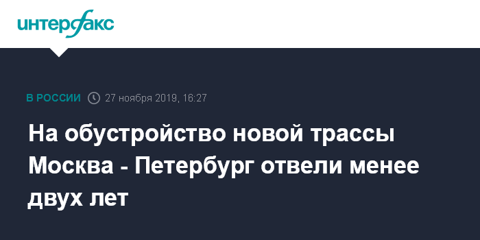 На обустройство новой трассы Москва - Петербург отвели менее двух лет