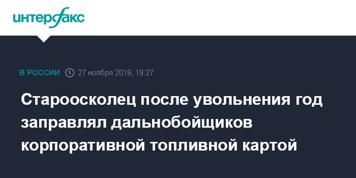 Москва. 27 ноября. INTERFAX.RU - Старооскольские следователи возбудили уголовное дело в отношении бывшего водителя одной из логистических компаний Оренбурга, который используя топливную карту, нанес компании ущерб почти на 4 млн рублей.