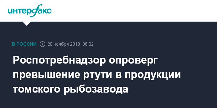 Москва. 28 ноября. INTERFAX.RU - Лабораторные исследования управления Роспотребнадзора Томской области не зафиксировали превышения содержания ртути в продукции ООО "Колпашевский рыбозавод", сообщили агентству "Интерфакс" в пресс-службе ведомства в четверг.