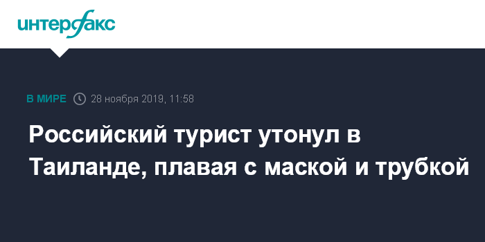 Москва. 28 ноября. INTERFAX.RU - Российский турист погиб на острове Рача-Яй к югу от Пхукета, занимаясь снорклингом, сообщает в четверг Phuket News.
