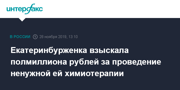 Екатеринбурженка взыскала полмиллиона рублей за проведение ненужной ей химиотерапии