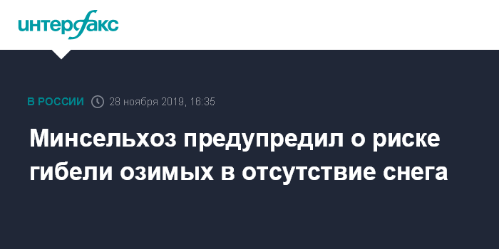 Москва. 28 ноября. INTERFAX.RU - На территориях, где начались морозы, но до сих пор не выпал снег, возник риск вымерзания посевов озимых, признал директор департамента растениеводства Минсельхоза Роман Некрасов. Он заявил об этом в Совете Федерации.