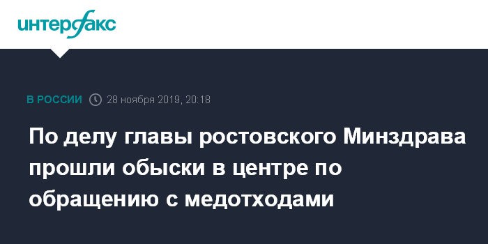 По делу главы ростовского Минздрава прошли обыски в центре по обращению с медотходами