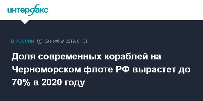 "Благодаря существенному обновлению корабельного и судового состава флота, доля современных кораблей и судов на Черноморском флоте превысила 50 процентов. Если говорить о ближайшей перспективе, то на 2020 год запланирована поставка ещё 16 современных боевых кораблей и судов обеспечения, что позволит увеличить их долю до 70 процентов", - сказал он.
