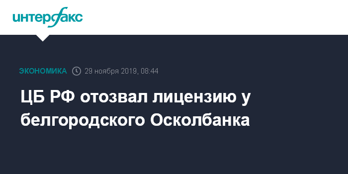 ЦБ РФ отозвал лицензию у белгородского Осколбанка