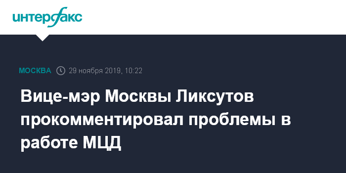 Вице-мэр Москвы Ликсутов прокомментировал проблемы в работе МЦД