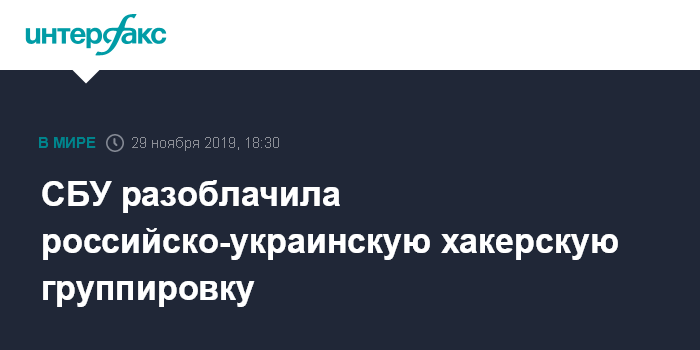 Москва. 29 ноября. INTERFAX.RU - В Черкасской области сотрудники Службы безопасности Украины пресекли деятельность международной хакерской группировки, которая похищала средства со счетов пользователей электронных платежных систем Европы и США.