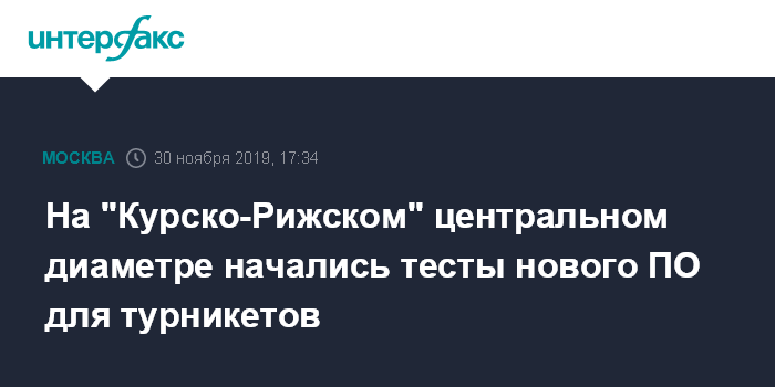 Москва. 30 ноября. INTERFAX.RU - На МЦД-2 "Курско-Рижский" начали тестировать программное обеспечение для управления турникетами, валидаторами и билетными автоматами, сообщили в субботу в департаменте по связям с общественностью АО "Центральная пригородной пассажирской компании (ЦППК)".