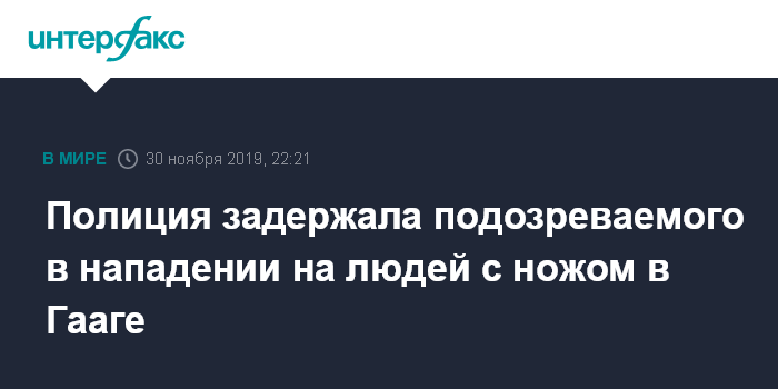 Москва. 30 ноября. INTERFAX.RU - Полиция Нидерландов задержала подозреваемого в нападении с ножом в Гааге, в результате которого пострадали три человека, сообщает BBC в субботу.