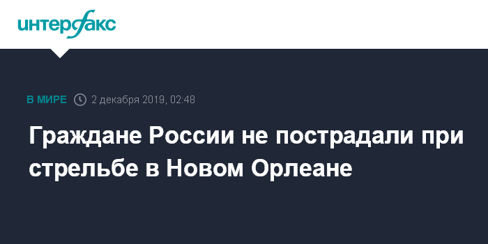 Москва. 2 декабря. INTERFAX.RU - Российские граждане не пострадали в результате стрельбы в Новом Орлеане, сообщает в твиттере Генеральное консульство России в Хьюстоне.