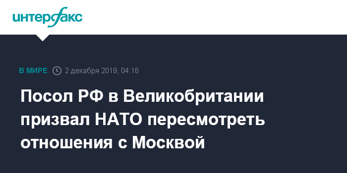 Посол РФ в Великобритании призвал НАТО пересмотреть отношения с Москвой
