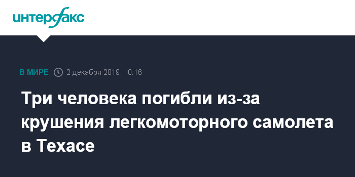 Три человека погибли из-за крушения легкомоторного самолета в Техасе