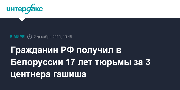 Гражданин РФ получил в Белоруссии 17 лет тюрьмы за 3 центнера гашиша