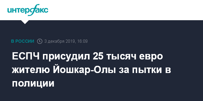 ЕСПЧ присудил 25 тысяч евро жителю Йошкар-Олы за пытки в полиции