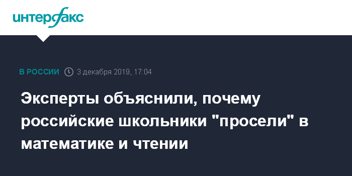 "До сих пор, с 2006 по 2015 год результаты России в PISA по читательской и математической грамотности росли. Мы "упали" несущественно относительно десятилетней перспективы, то есть изменения по итогам исследования 2018 года можно рассматривать как локальную флуктуацию. Поэтому мы бы не драматизировали ситуацию. С другой стороны, надо признать, что усиление внимания к ВПР (Всероссийским проверочным работам - ИФ) и ОГЭ (итоговой аттестации 9-х классов - ИФ) в традиционной форме, возможно, сыграло свою роль", - сказал научный руководитель Института образования НИУ ВШЭ Исак Фрумин агентству во вторник.