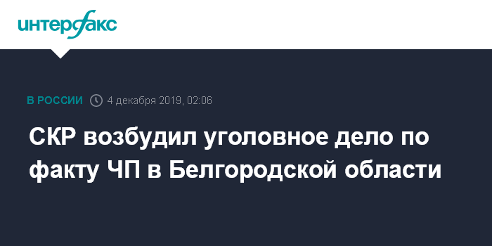 СКР возбудил уголовное дело по факту ЧП в Белгородской области