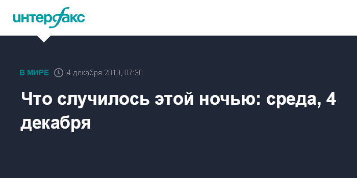 Москва. 4 декабря. INTERFAX.RU - Краткая сводка событий, произошедших к утру: