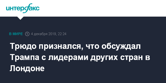 Москва. 4 декабря. INTERFAX.RU - Премьер-министр Канады Джастин Трюдо в среду заявил, что действительно сделал ряд комментариев о президенте США Дональде Трампе во время беседы с лидерами других стран в Букингемском дворце, которая попала на видео и вызвала резонанс в СМИ.