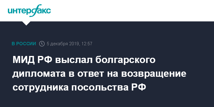 МИД РФ выслал болгарского дипломата в ответ на возвращение сотрудника посольства РФ