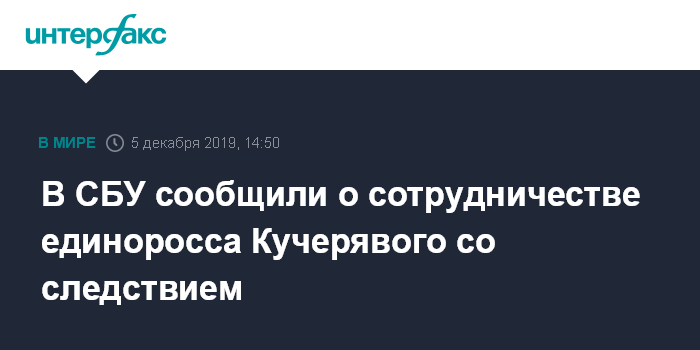 В пресс-центре СБУ агентству "Интерфакс-Украина" сообщили, что Кучерявый пошел на сотрудничество со следствием. "В настоящее время решается вопрос относительно уведомления о подозрении", - добавили в пресс-центре.