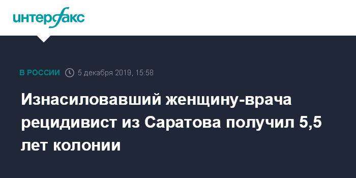 Москва. 5 декабря. INTERFAX.RU - Суд в Саратове вынес приговор насильнику, напавшему на врача поликлиники, сообщается на сайте Следственного комитета РФ (СКР) в четверг.