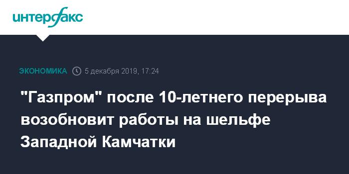 "Газпром" после 10-летнего перерыва возобновит работы на шельфе Западной Камчатки