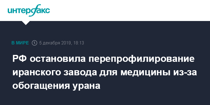 РФ остановила перепрофилирование иранского завода для медицины из-за обогащения урана